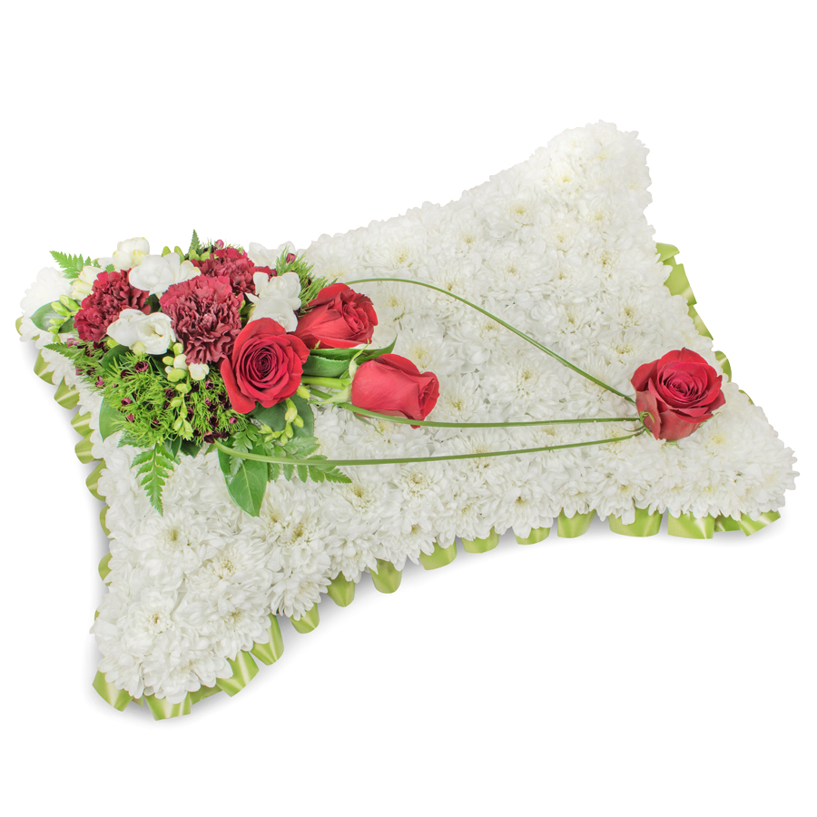 Send your deepest condolences with our beautiful sympathy arrangement, featuring a stunning mix of white chrysanthemums, red roses, white freesias, dark red carnations, dianthus, and graceful bear grass. Each flower is carefully hand-selected for maximum freshness and longevity.